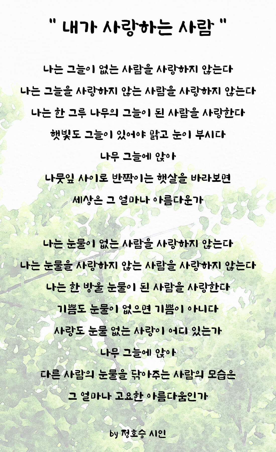나는 한 그루의 나무의 그늘이 된 사람을 사랑한다